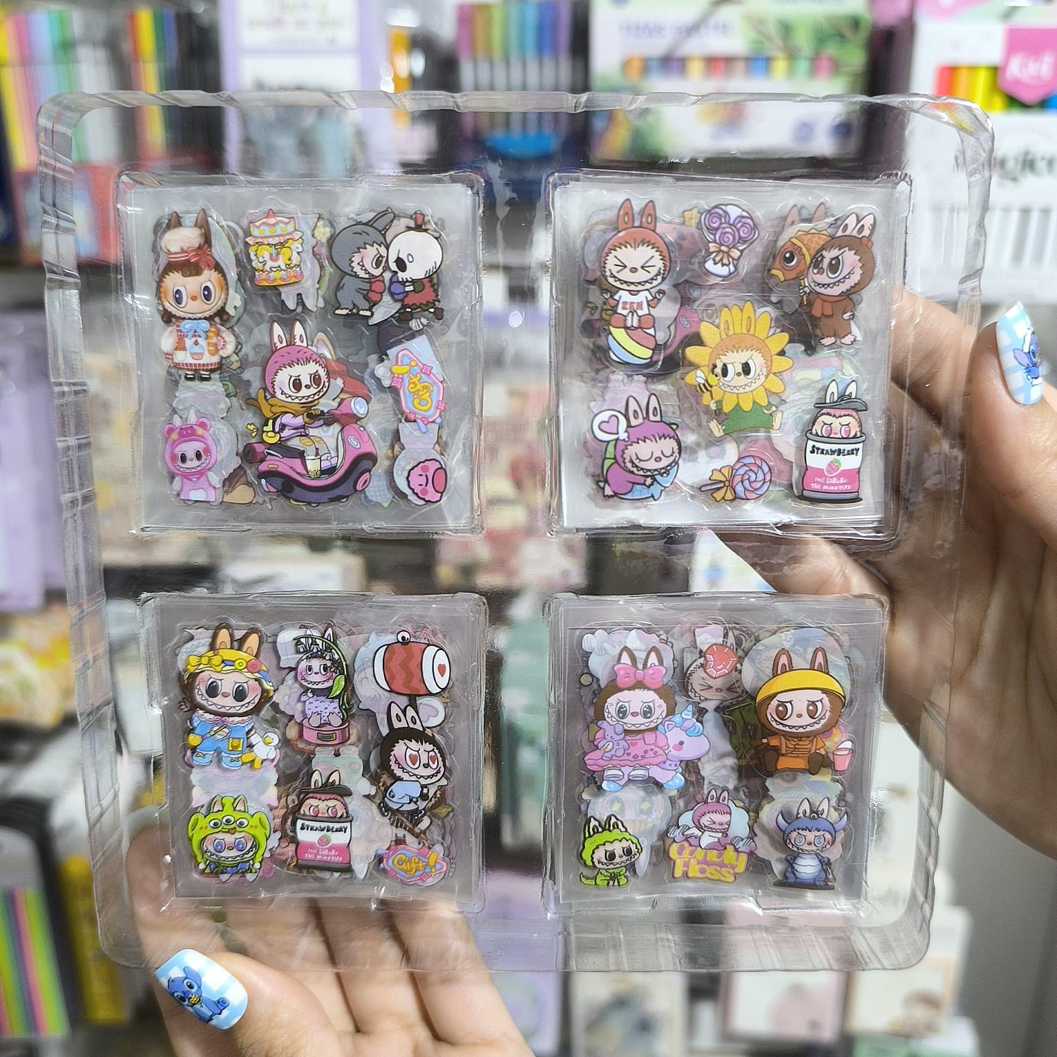 Todos los sets traen los mismos stickers. Solo cambia el diseño de la portada.