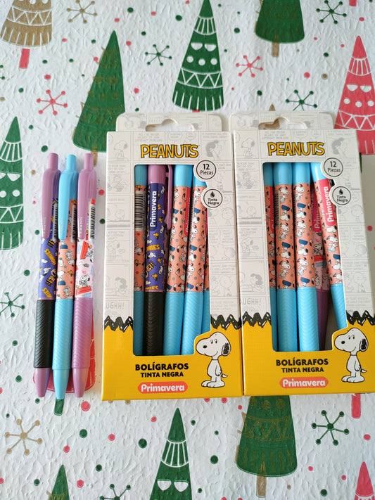 Lapiceros De Snoopy Tinta Negra Set Por 3 Unidades